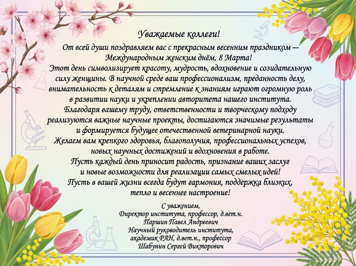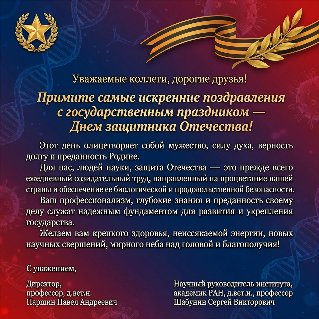 Рад приветствовать Вас на сайте Федерального государственного бюджетного научного учреждения «Всероссийский научно-исследовательский ветеринарный институт патологии, фармакологии и терапии».